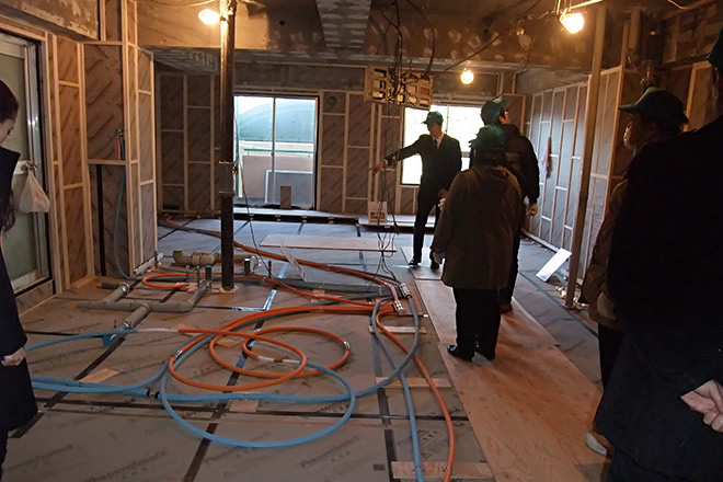 今見学会は、オシャレ感覚のリノベーションではなく、断熱や配管、床遮音など住み心地を一新する、快適な住まいについて、施工現場だから「見て・聞いて・知る」ことができる内容でした。