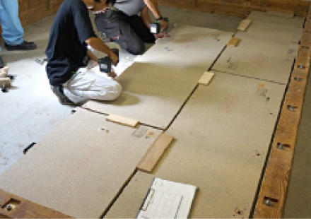 建物の構造(床スラブ厚)に応じた床施工が可能で、現在の一般的な新築マンションと同等の遮音性能が可能となります。