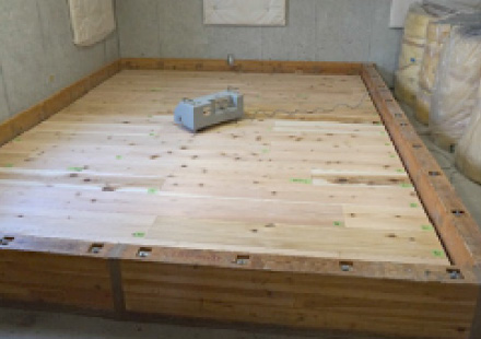 マルリノの床遮音性能は、公的試験機関の試験室で実際にコンクリートスラブの上に二重床システムを無垢フローリング材との組み合わせで施工した上で、タッピングマシンを使って衝撃音を発生させ、コンクリートスラブの下でどれだけ軽減されているかを計測することで性能を確認しています。