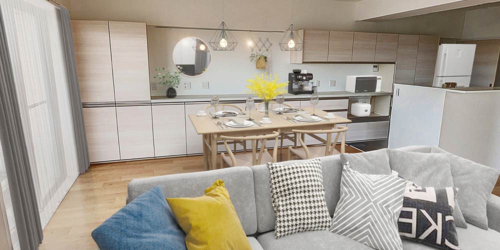 ほかにも、車いすの使用を想定した段差解消やひろびろとした明るいキッチンなど、